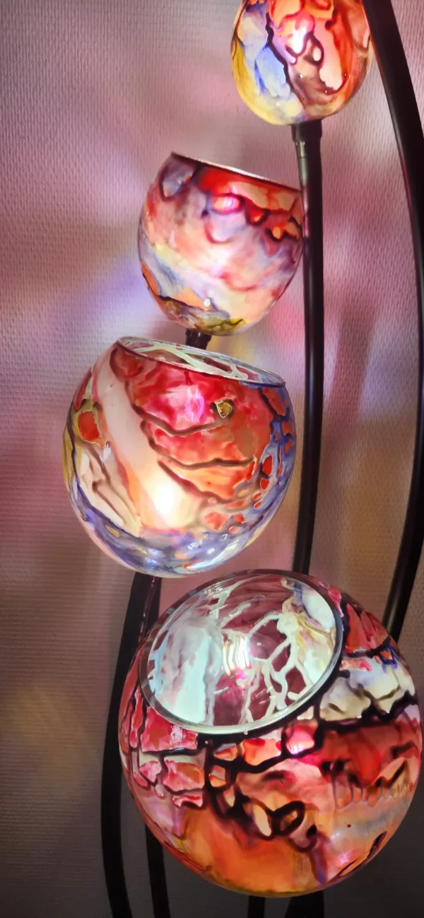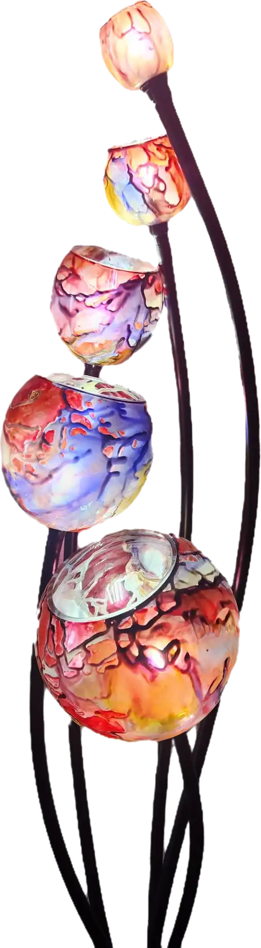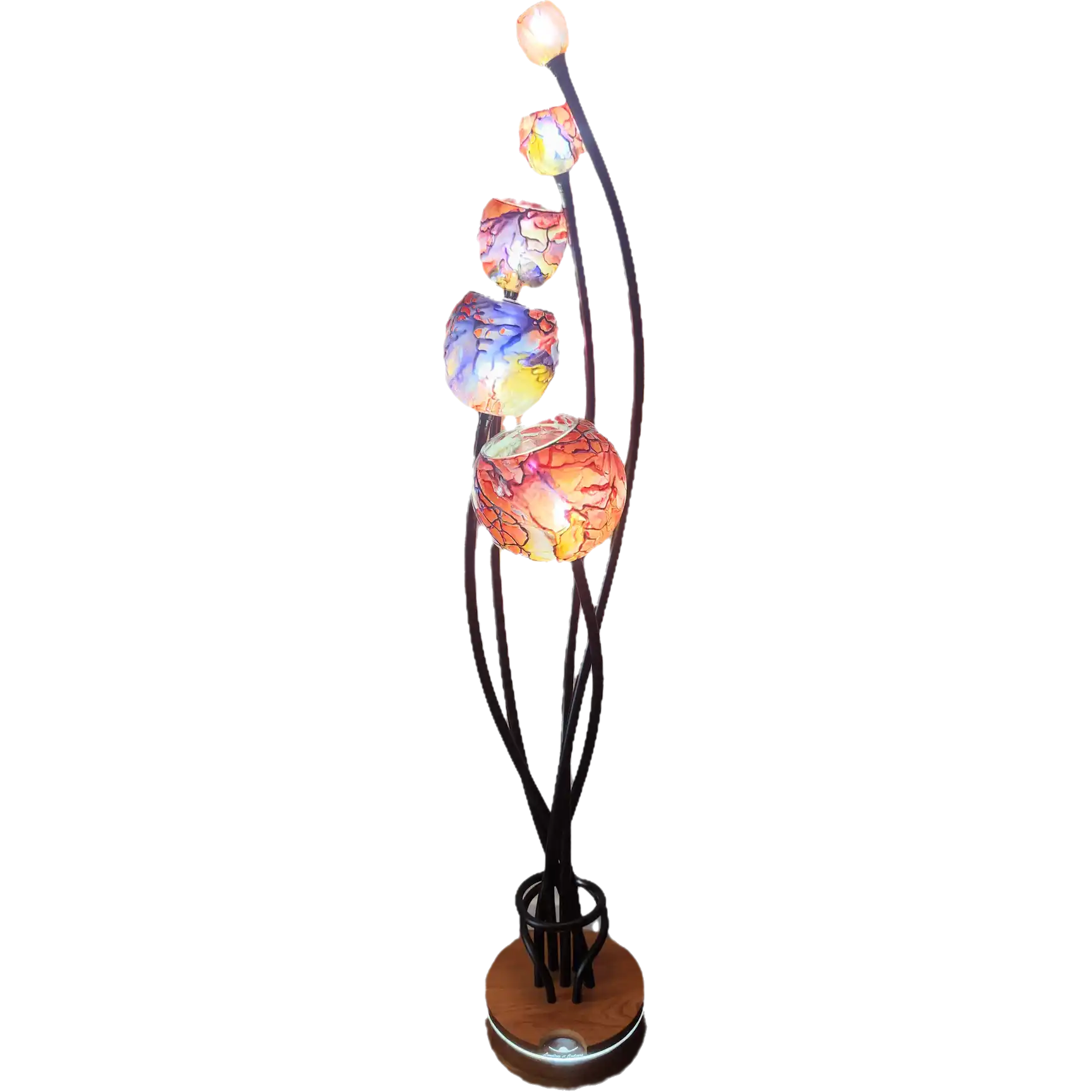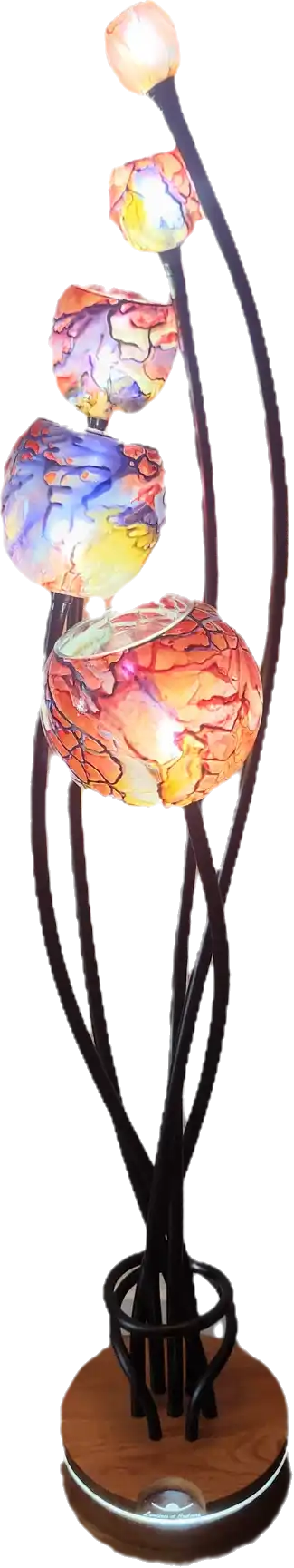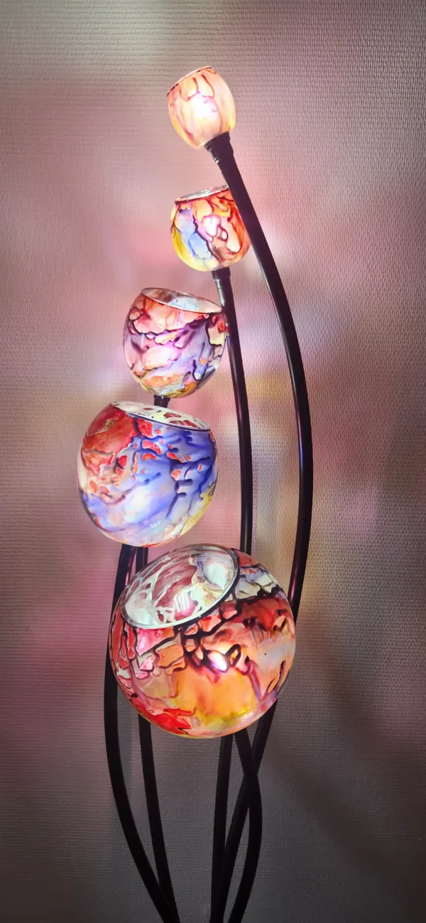 Luminaire design 5 tiges Rose Lavande, tiges noires