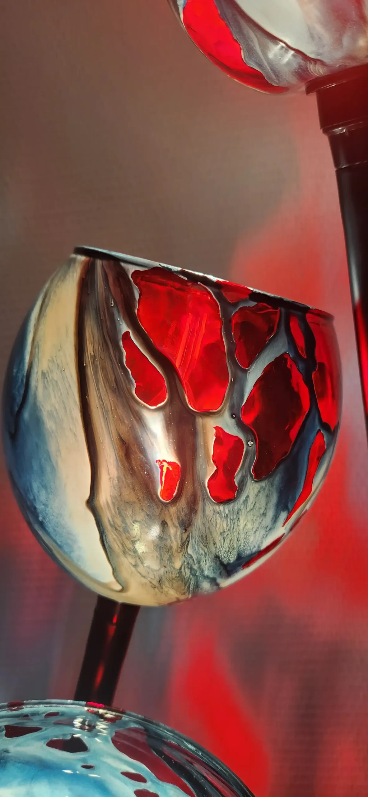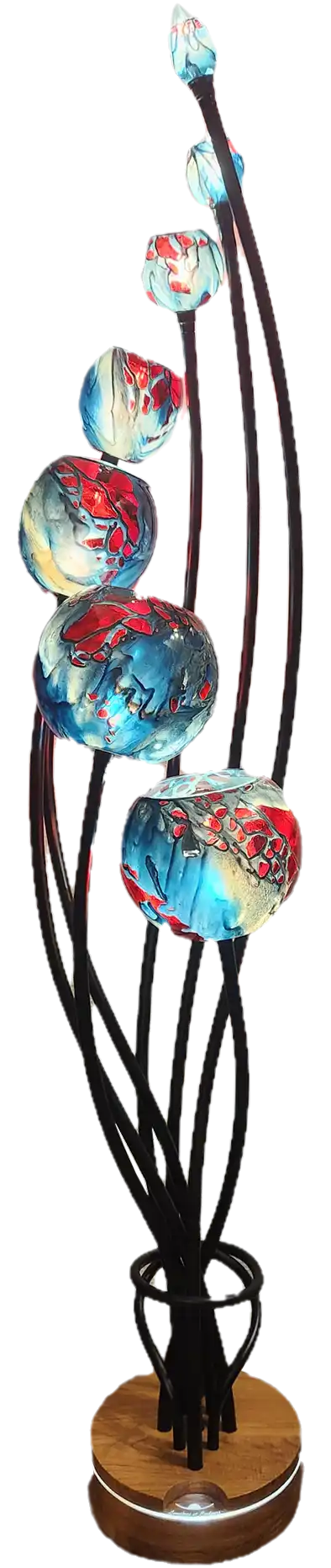 Luminaire design 7 tiges Bleu-Gris Rouge