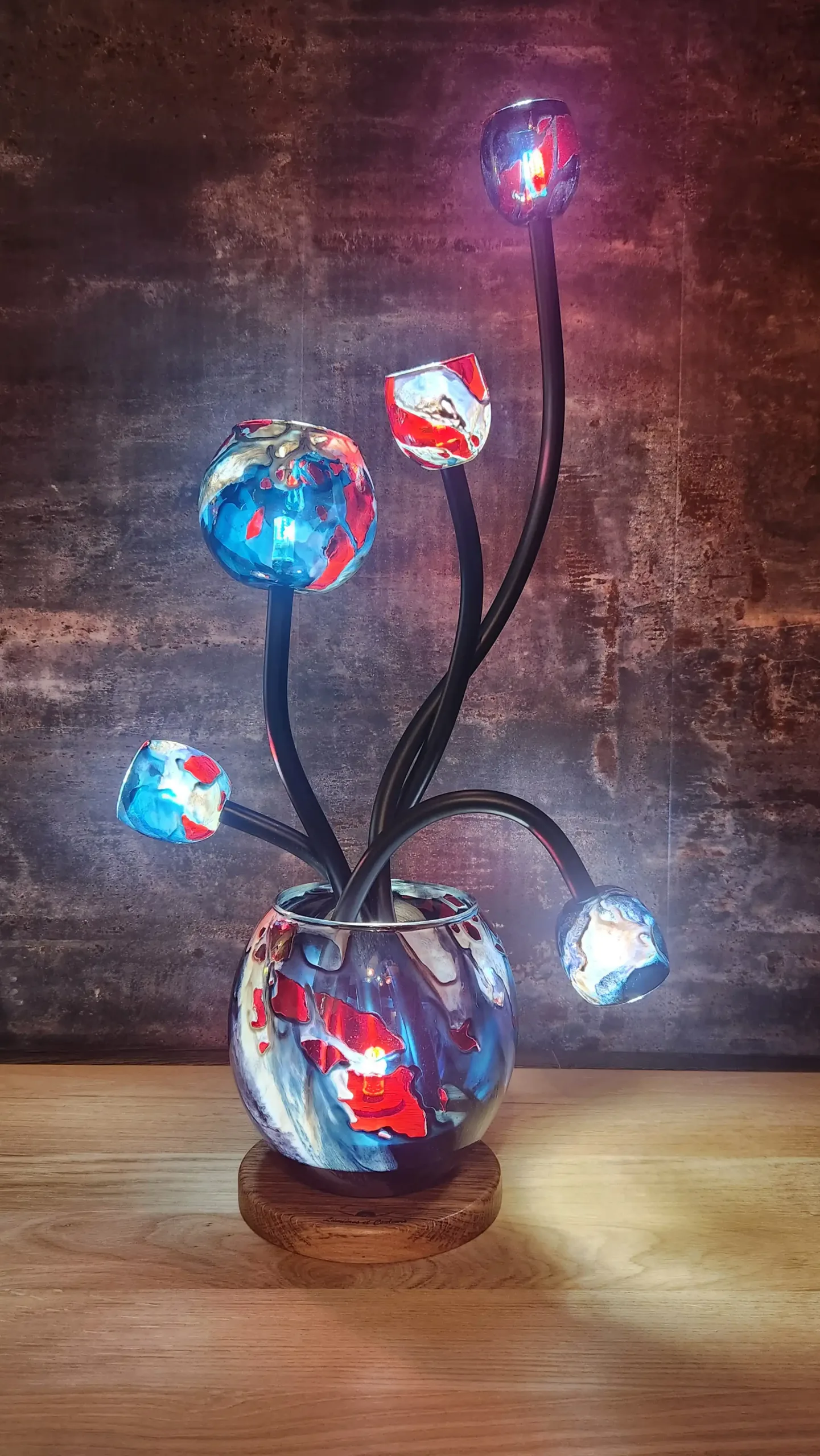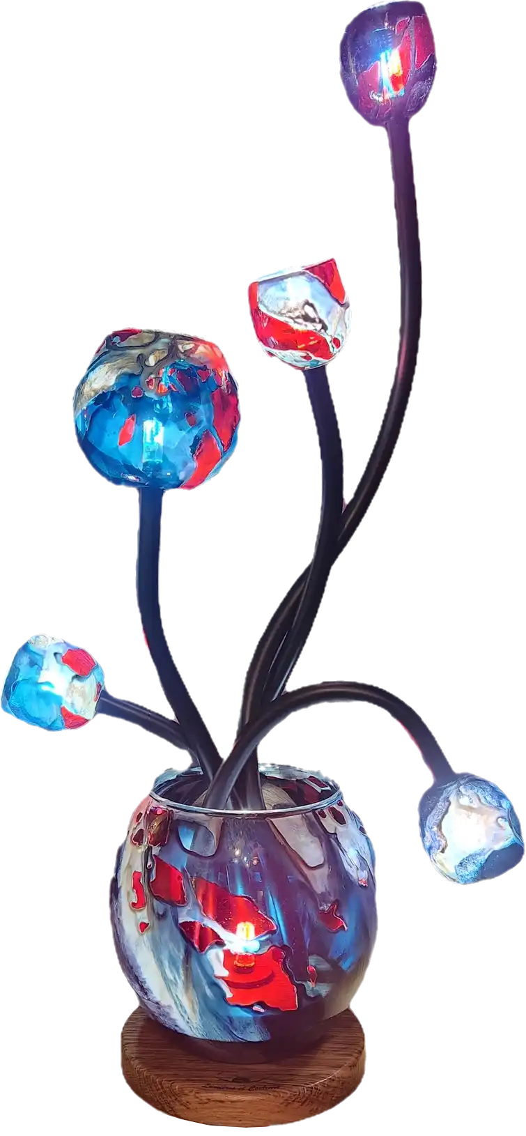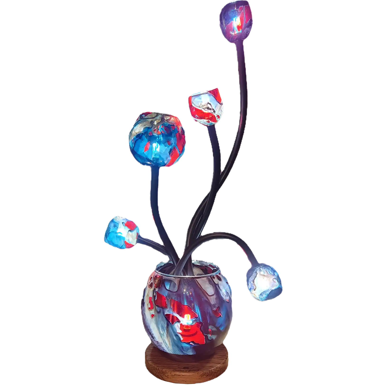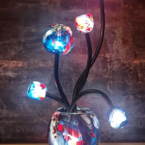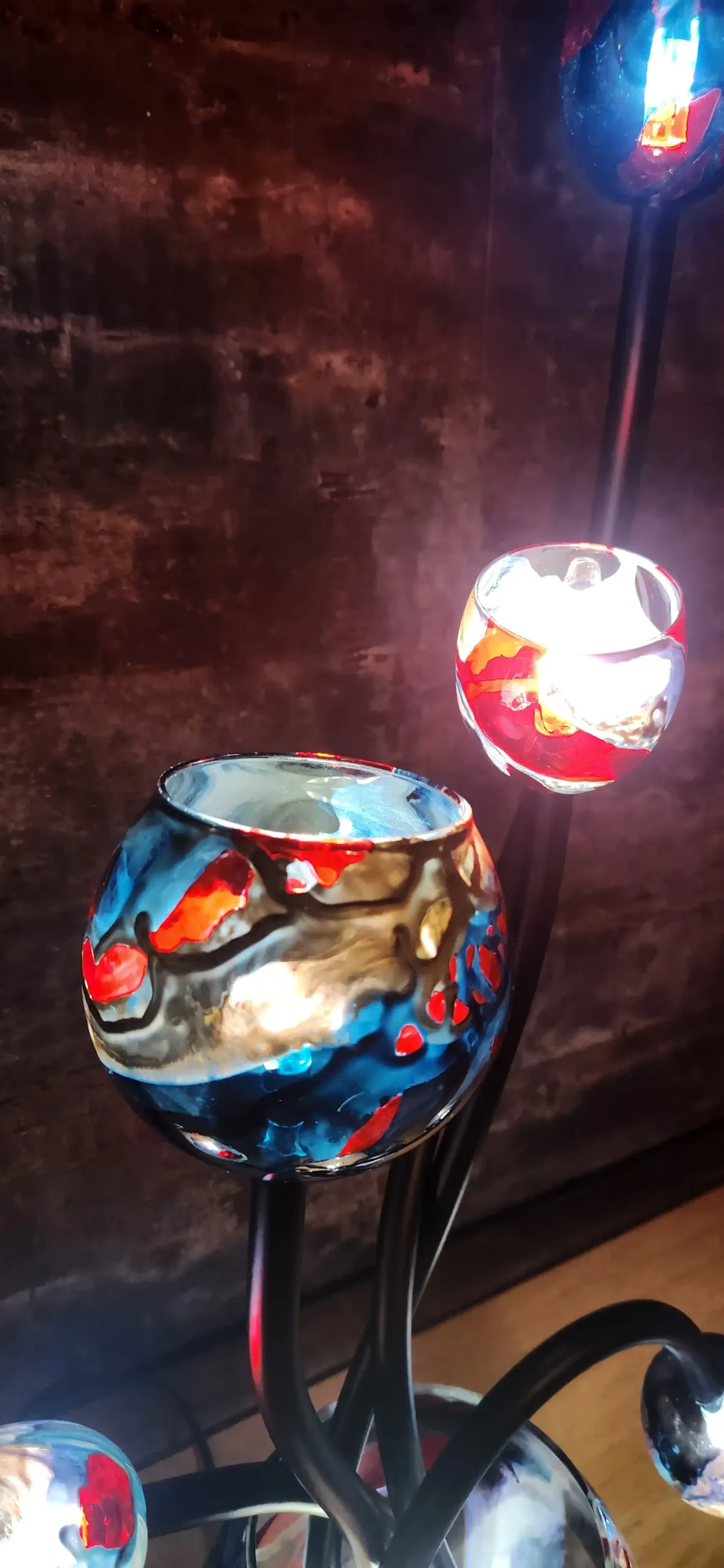 Luminaire design 6 globes Indigo Rouge tiges noires