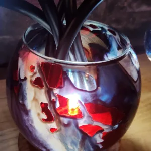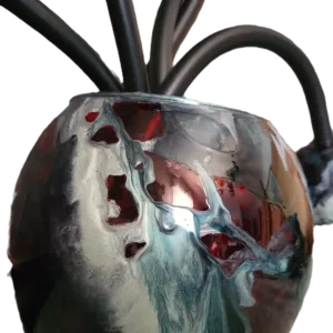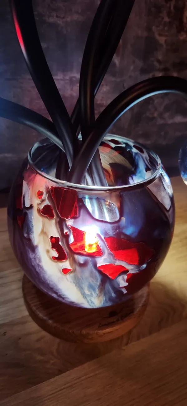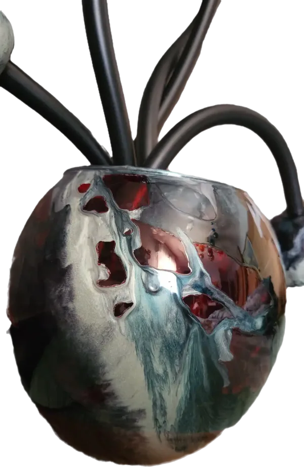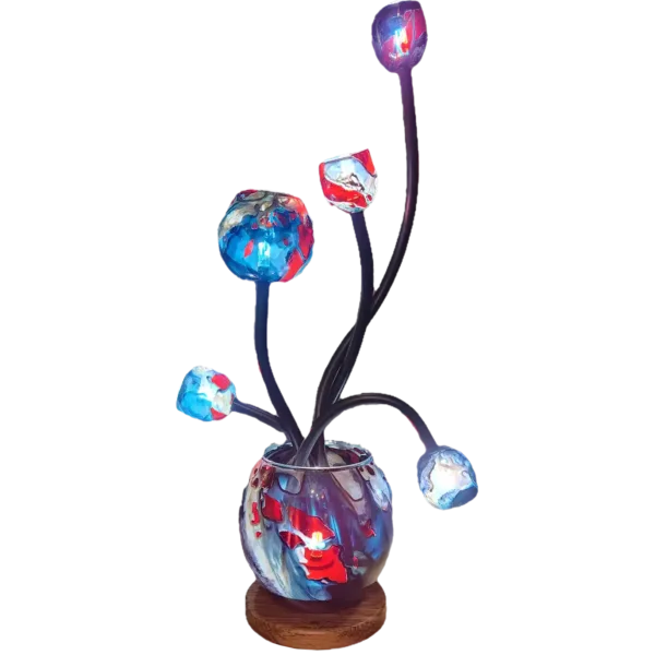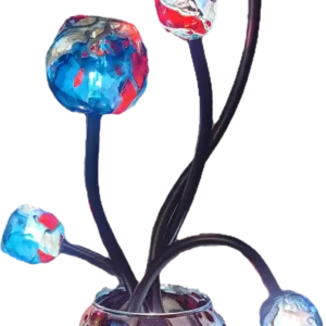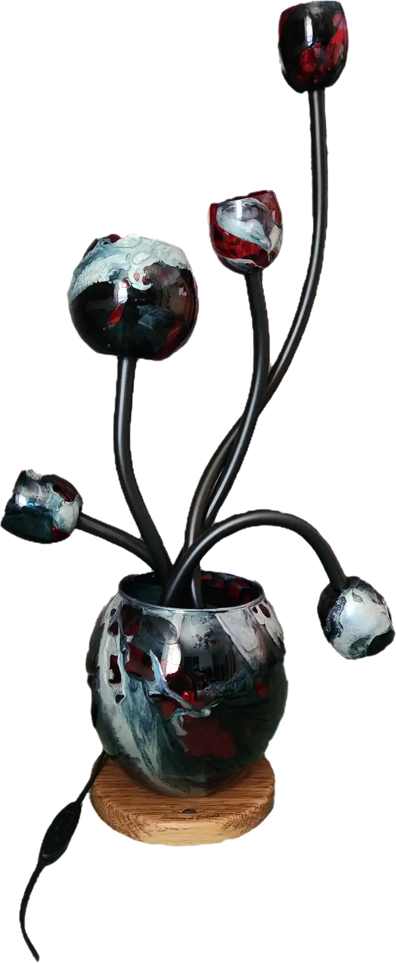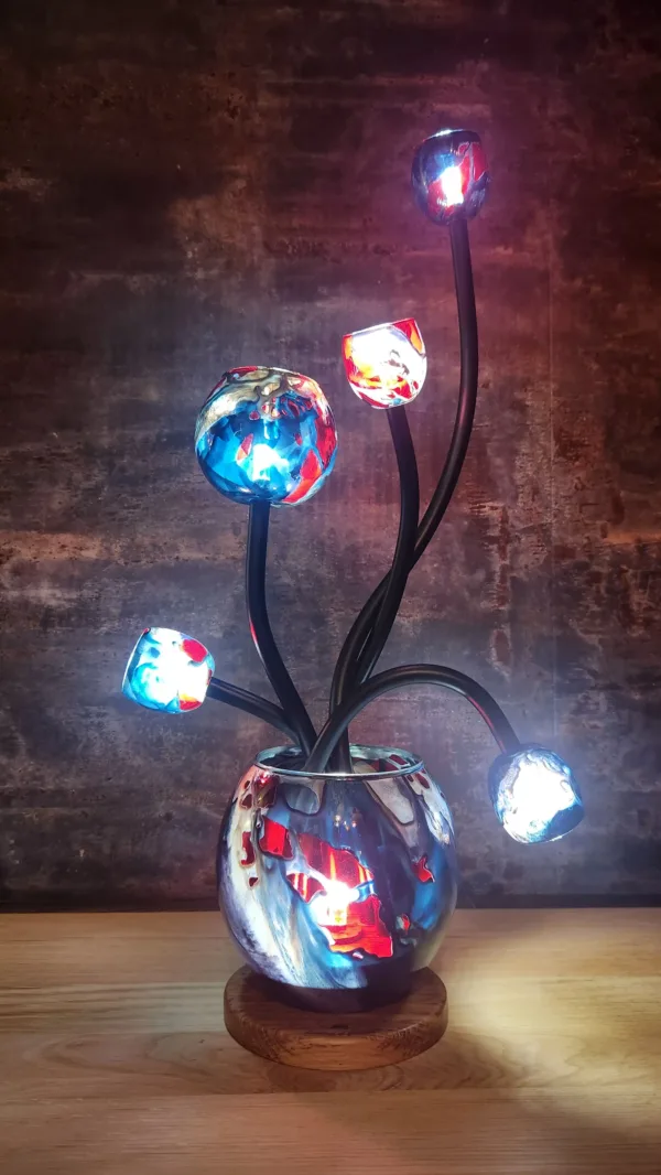 Luminaire design 6 globes Indigo Rouge tiges noires