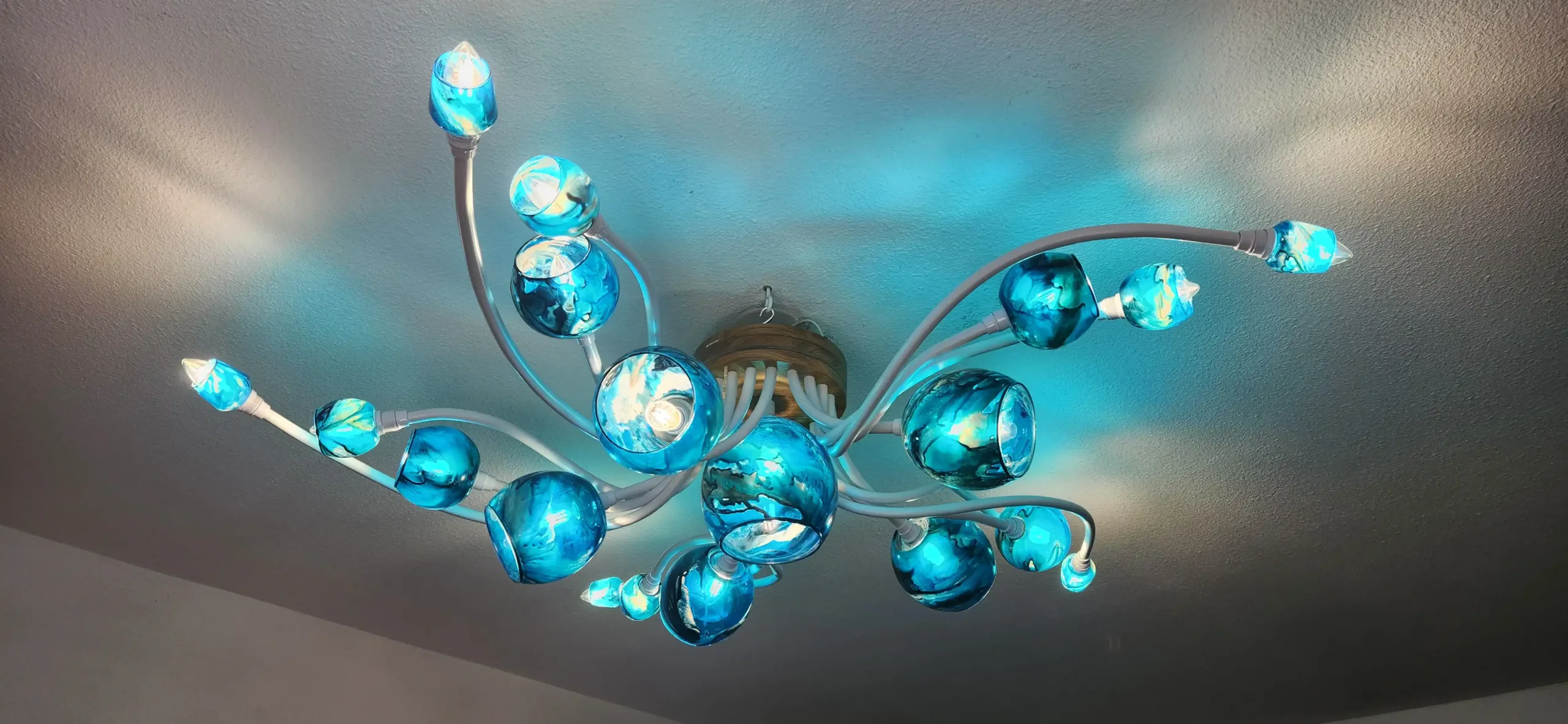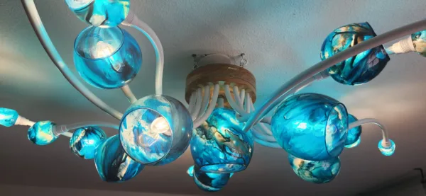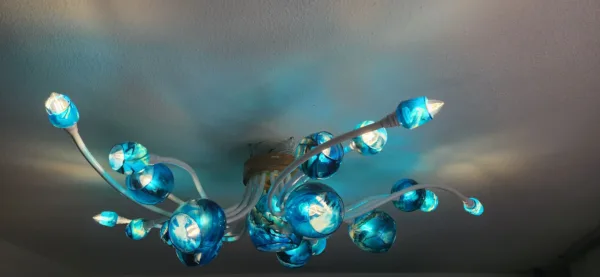 Lustre design 21 tiges Bleu franc